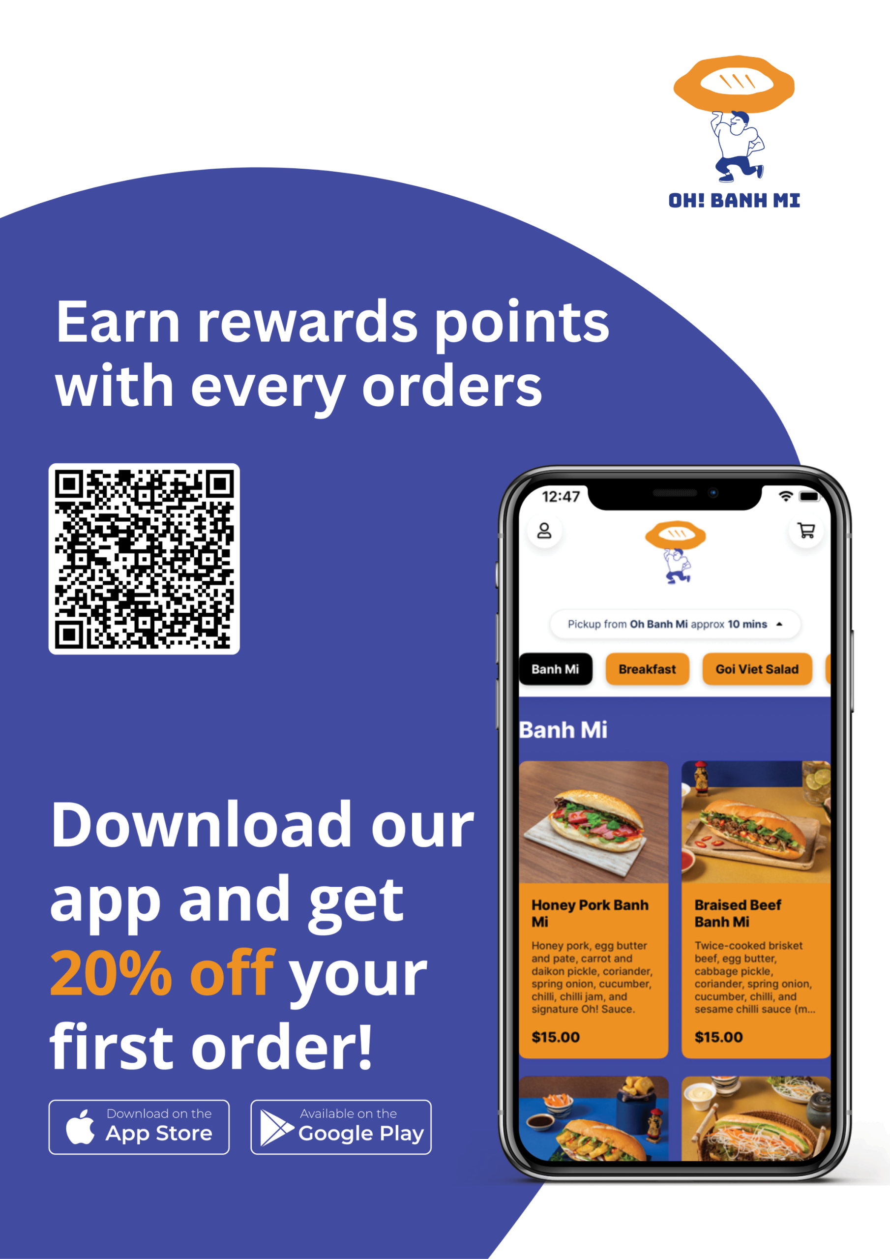 Sign up to our Oh! Banh Mi Loyalty Program and start collecting Crusts every time you order.